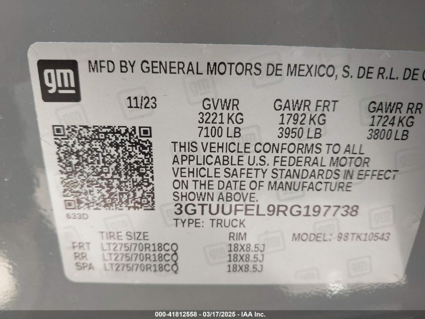 2024 GMC SIERRA 1500 2024 Gasoline, 6.2, Full drive, VIN - 3GTUUFEL9RG****** from the USA