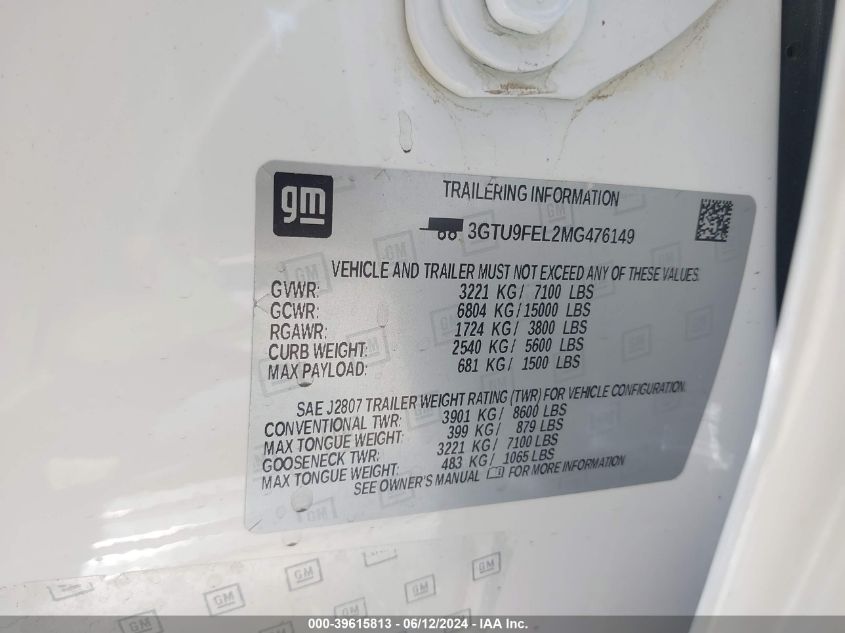 Color WhiteCylinders 8Drive Full driveVIN 3GTU9FEL2MG******State Run & Drive VerifiedDamage Right sideAuction date 2025-03-20