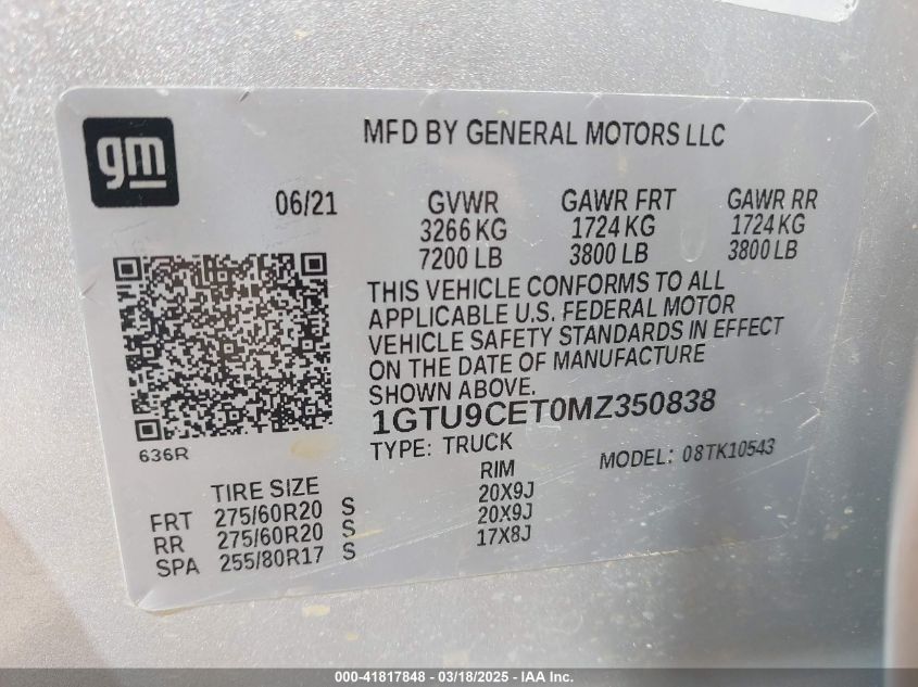 Color SilverCylinders 6Drive Full driveVIN 1GTU9CET0MZ******State Run & Drive VerifiedDamage From the sides