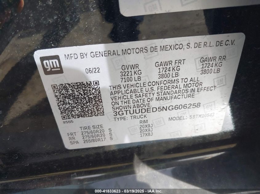 Color BlackCylinders 8Drive Full driveVIN 3GTUUDED5NG******State Run & Drive VerifiedDamage Front or back