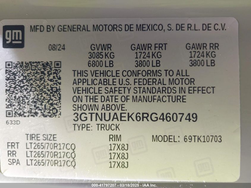 2024 GMC SIERRA 1500 2024 Gasoline, 2.7, Full drive, VIN - 3GTNUAEK6RG****** from the USA