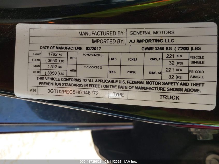 Color BlackCylinders 8Drive Full driveVIN 3GTU2PEC5HG******State Run & Drive VerifiedDamage Rear leftAuction date 2025-03-20