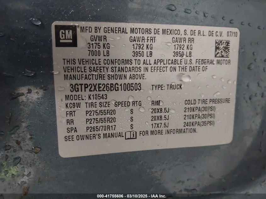Color BlueCylinders 8Drive Full driveVIN 3GTP2XE26BG******State Run & Drive VerifiedDamage Left sideAuction date 2025-03-21