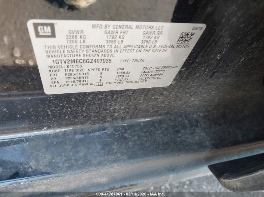 Color BlackCylinders 8Drive Full driveVIN 1GTV2MEC6GZ******State Run & Drive VerifiedDamage Front or backAuction date 2025-03-26