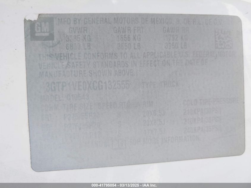 Color WhiteCylinders 8Drive UnknownVIN 3GTP1VE0XCG******State Run & Drive VerifiedDamage Front or back