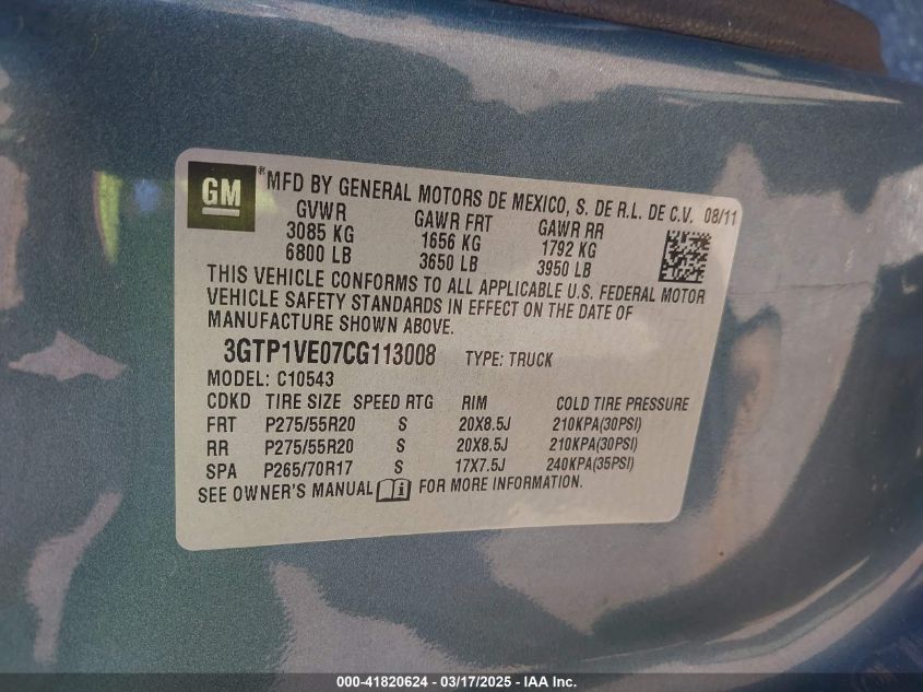 Color GrayCylinders 8Drive UnknownVIN 3GTP1VE07CG******State Run & Drive VerifiedDamage Front or back
