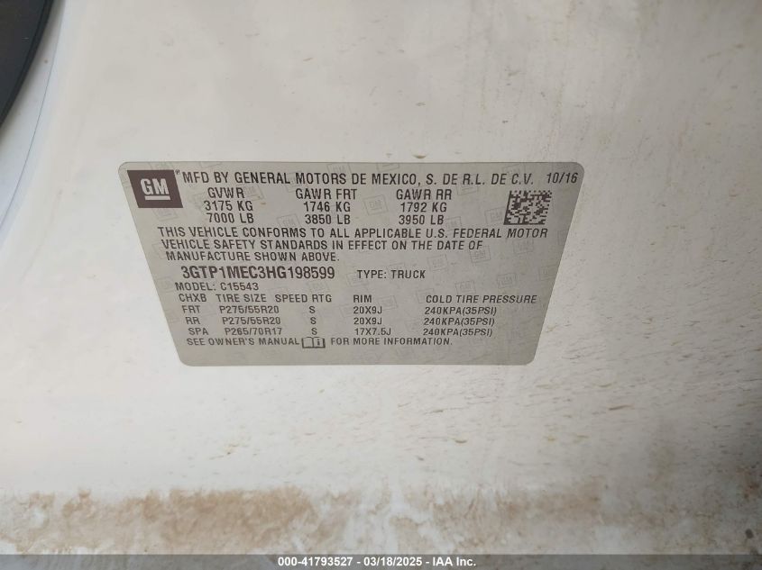 Color WhiteCylinders 8Drive UnknownVIN 3GTP1MEC3HG******State Run & Drive VerifiedDamage Due to bad weather