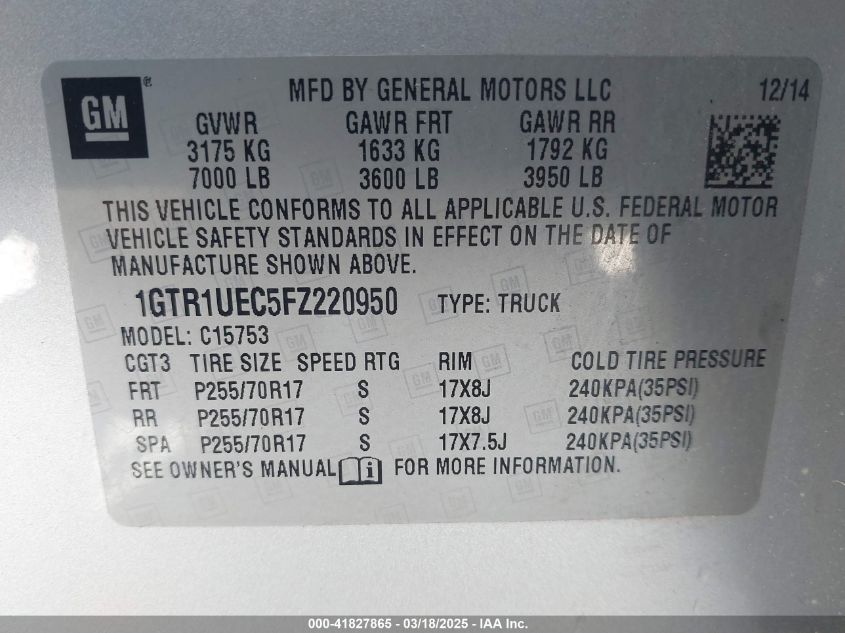 Color SilverCylinders 8Drive UnknownVIN 1GTR1UEC5FZ******State Run & Drive VerifiedDamage Insignificant
