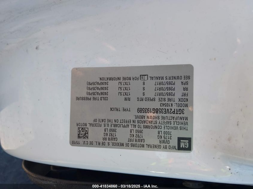 Color WhiteCylinders 8Drive Full driveVIN 3GTP2VE35BG******State Run & Drive VerifiedDamage Right side