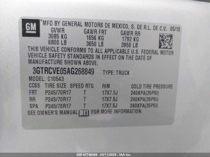 Color SilverCylinders 8Drive UnknownVIN 3GTRCVE05AG******State Run & Drive VerifiedDamage Front or backAuction date 2025-03-24