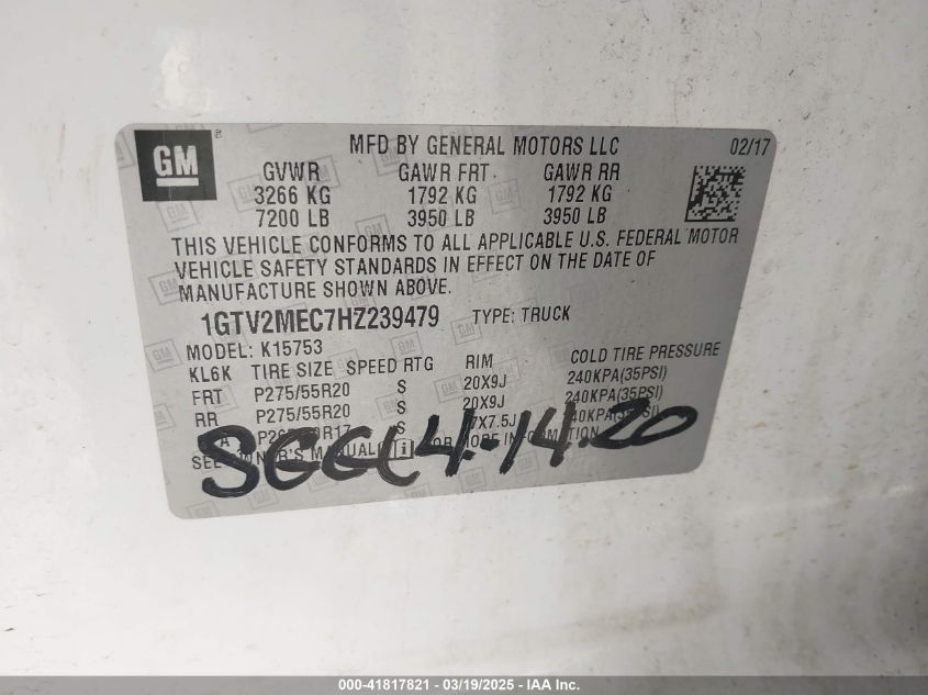 Color WhiteCylinders 8Drive Full driveVIN 1GTV2MEC7HZ******State Run & Drive VerifiedDamage Front or back