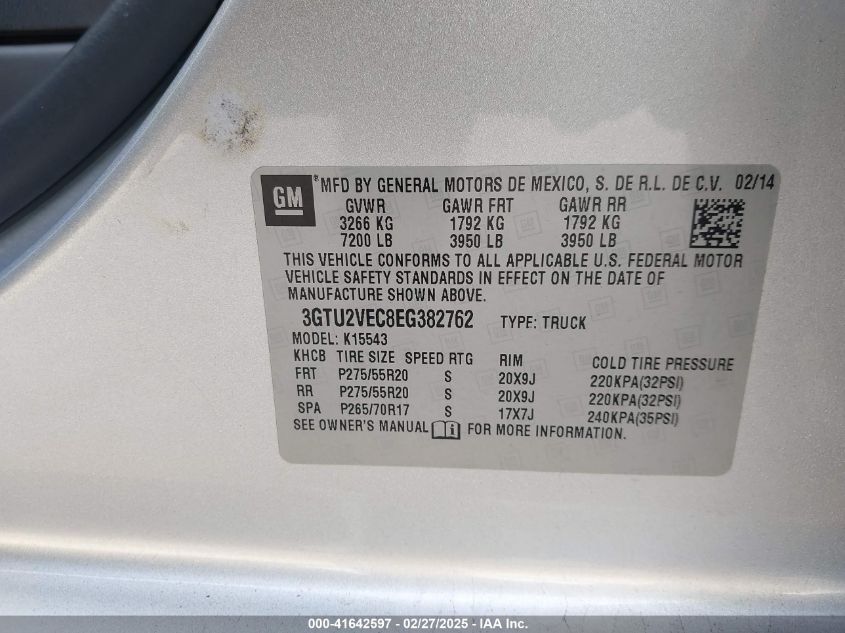 Color SilverCylinders 8Drive Full driveVIN 3GTU2VEC8EG******State Run & Drive VerifiedDamage Front or back
