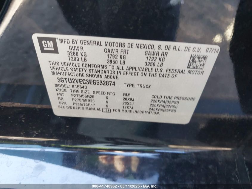 Color BlackCylinders 8Drive Full driveVIN 3GTU2VEC3EG******State Run & Drive VerifiedDamage Front right