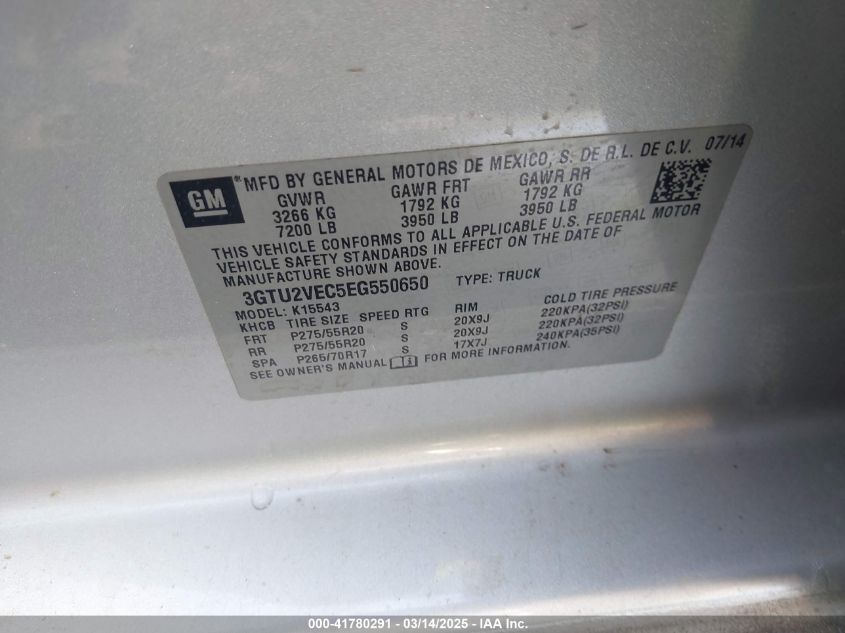 Color SilverCylinders 8Drive Full driveVIN 3GTU2VEC5EG******State Run & Drive VerifiedDamage Front and back