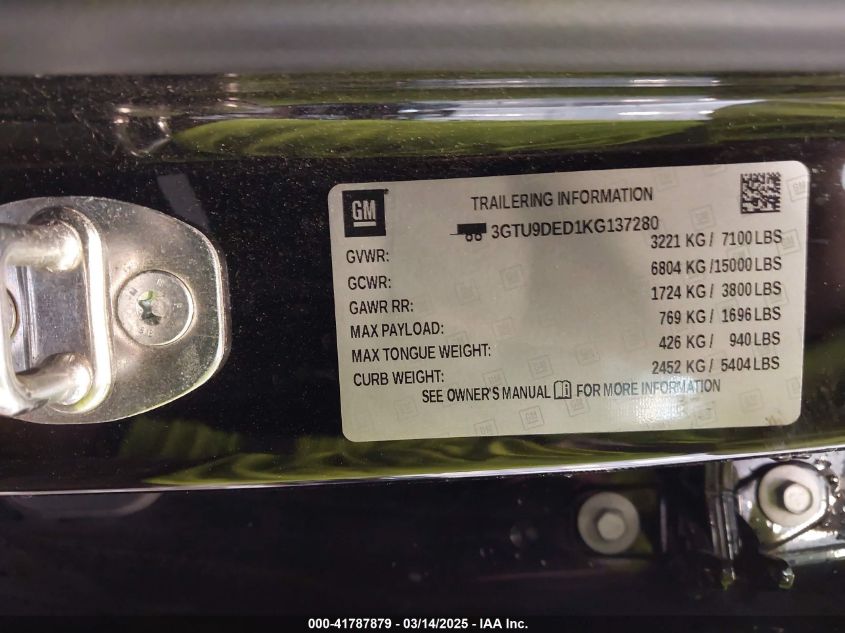 Color BlackCylinders 8Drive Full driveVIN 3GTU9DED1KG******State Run & Drive VerifiedDamage Roof