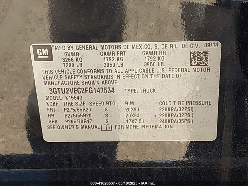 Color BlackCylinders 8Drive Full driveVIN 3GTU2VEC2FG******State Run & Drive VerifiedDamage All over the car