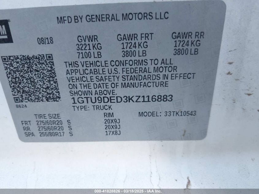 2019 GMC SIERRA 1500 2019 Gasoline, 5.3, Full drive, VIN - 1GTU9DED3KZ****** from the USA