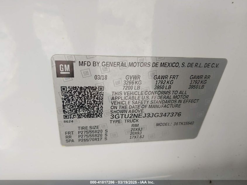 Color WhiteCylinders 8Drive Full driveVIN 3GTU2NEJ3JG******State Run & Drive VerifiedDamage Front and back