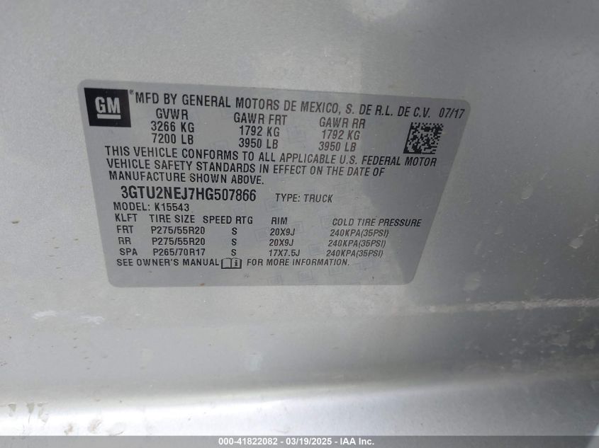 Color WhiteCylinders 8Drive Full driveVIN 3GTU2NEJ7HG******State Run & Drive VerifiedDamage Front right