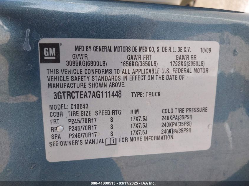 Color BlueCylinders 8Drive UnknownVIN 3GTRCTEA7AG******State Run & Drive VerifiedDamage Front left