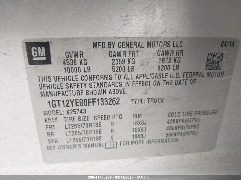 Color SilverCylinders 8Drive Full driveVIN 1GT12YE80FF******State Run & Drive VerifiedDamage Front or back