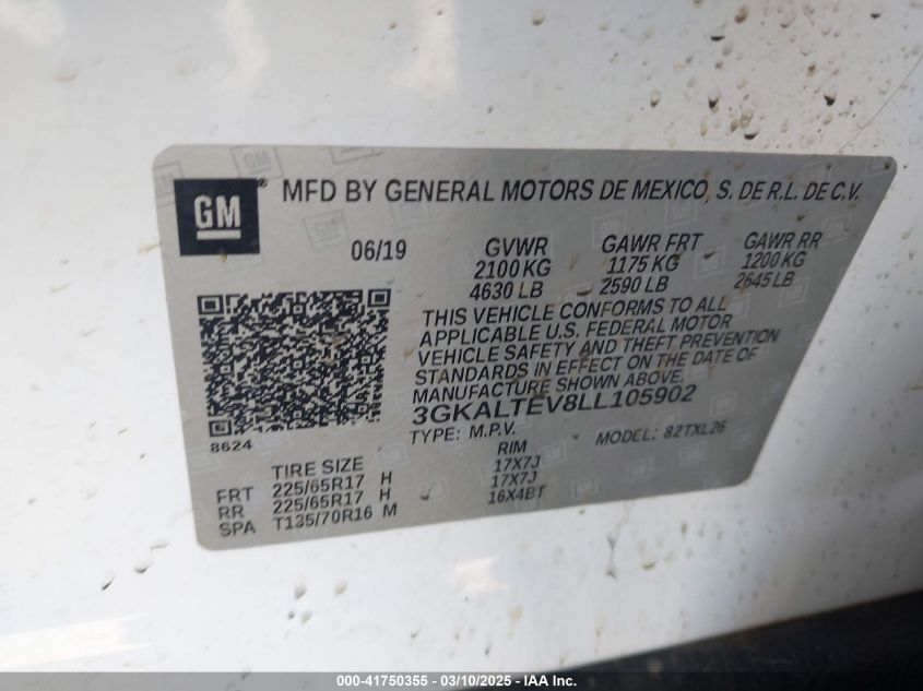 Color WhiteCylinders 4Drive Full driveVIN 3GKALTEV8LL******State Run & Drive VerifiedDamage Front or back AutoRIA