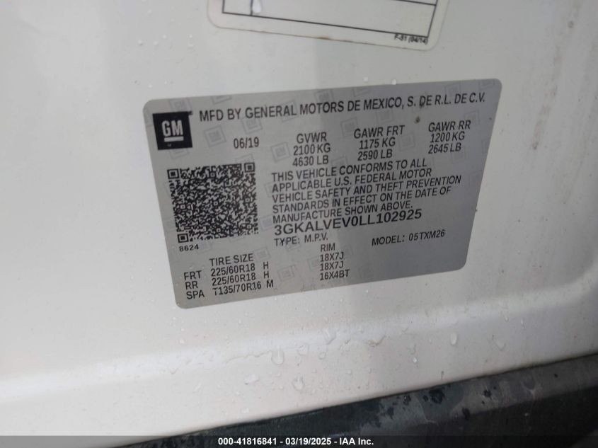 2020 GMC TERRAIN 2020 Gasoline, 1.5, Full drive, VIN - 3GKALVEV0LL****** from the USA