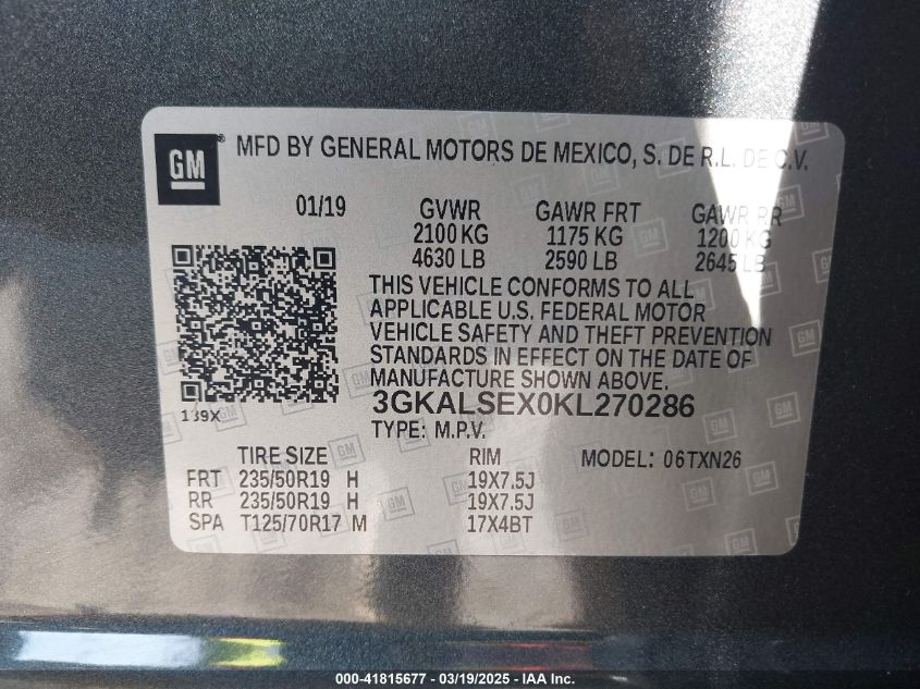 Color GrayCylinders 4Drive Front wheel driveVIN 3GKALSEX0KL******State Run & Drive VerifiedDamage Front or back AutoRIA
