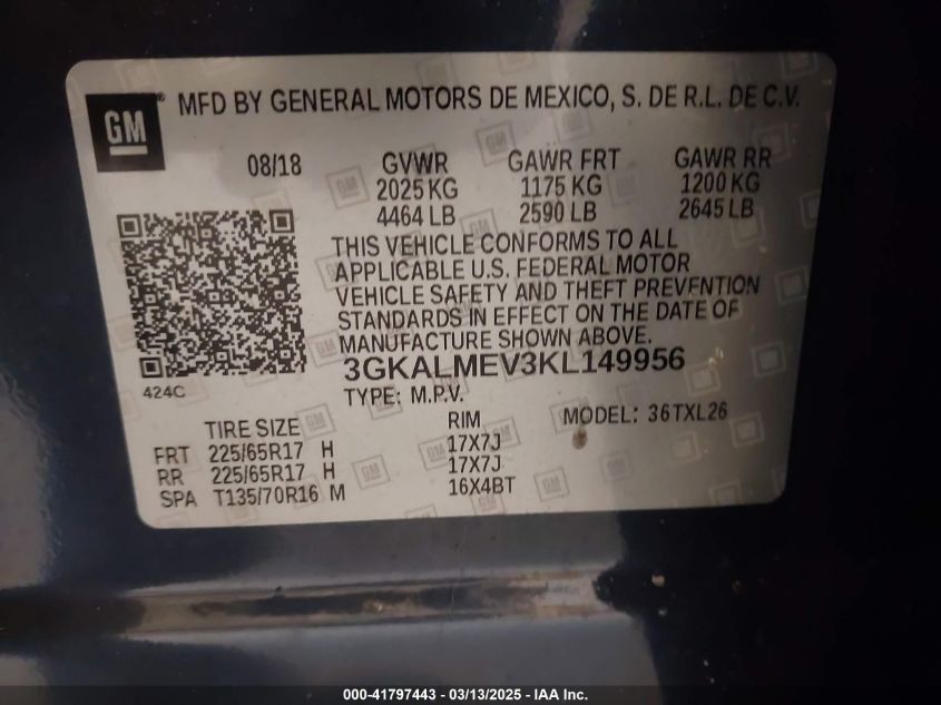 Color GrayCylinders 4Drive Front wheel driveVIN 3GKALMEV3KL******State Run & Drive VerifiedDamage Front or back AutoRIA