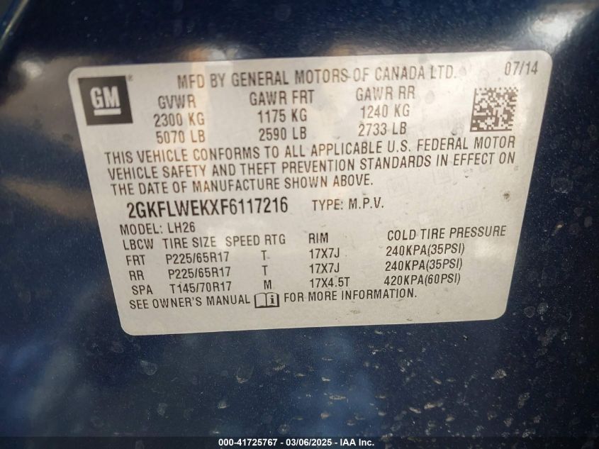 2015 GMC TERRAIN 2015 Gasoline, 2.4, Full drive, VIN - 2GKFLWEKXF6****** from the USA