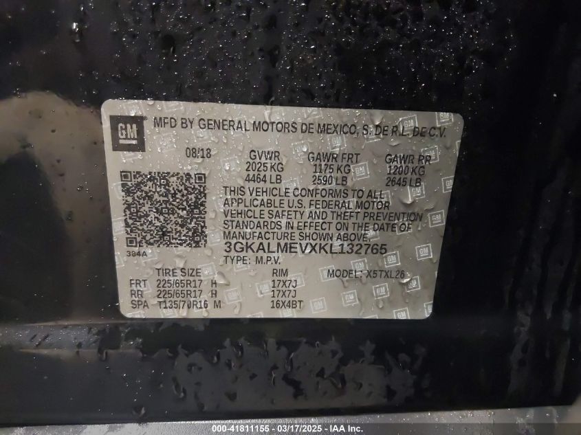 Color BlackCylinders 4Drive Front wheel driveVIN 3GKALMEVXKL******State Run & Drive VerifiedDamage Front right AutoRIA