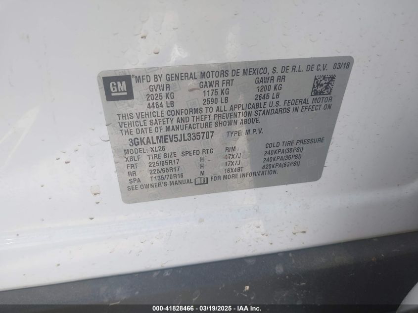 Color WhiteCylinders 4Drive Front wheel driveVIN 3GKALMEV5JL******State Run & Drive VerifiedDamage Front or back AutoRIA