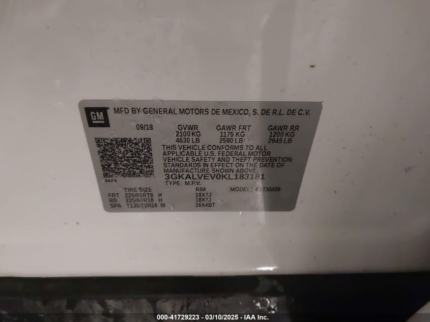 Color WhiteCylinders 4Drive Full driveVIN 3GKALVEV0KL******State Run & Drive VerifiedDamage Front or back AutoRIA