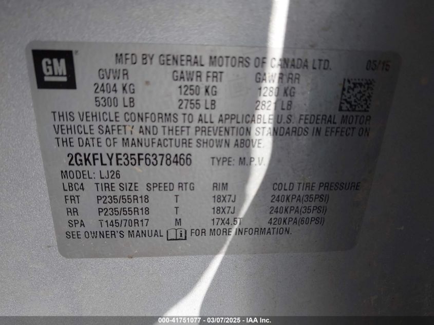 2015 GMC TERRAIN 2015 Gasoline, 3.6, Full drive, VIN - 2GKFLYE35F6****** from the USA
