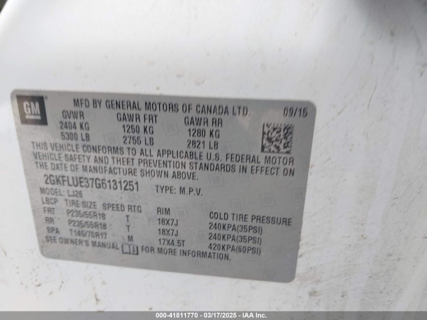 Color WhiteCylinders 6Drive Full driveVIN 2GKFLUE37G6******State Run & Drive VerifiedDamage Front or back AutoRIA