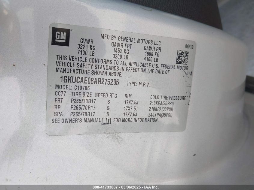 Color SilverCylinders 8Drive UnknownVIN 1GKUCAE08AR******State Run & Drive VerifiedDamage Front or backAuction date 2025-03-21