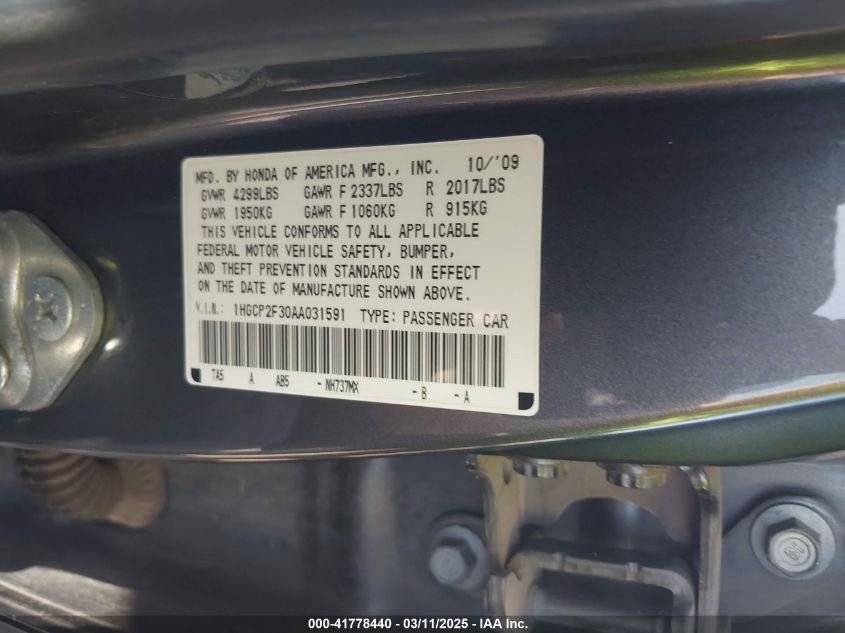 2010 HONDA ACCORD 2010 Gasoline, 2.4, Front wheel drive, VIN - 1HGCP2F30AA****** from the USA