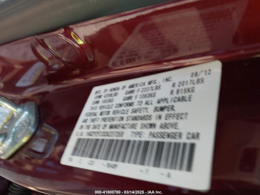 Color BurgundyCylinders 4Drive Front wheel driveVIN 1HGCP2F33CA******State Run & Drive VerifiedDamage Insignificant AutoRIA