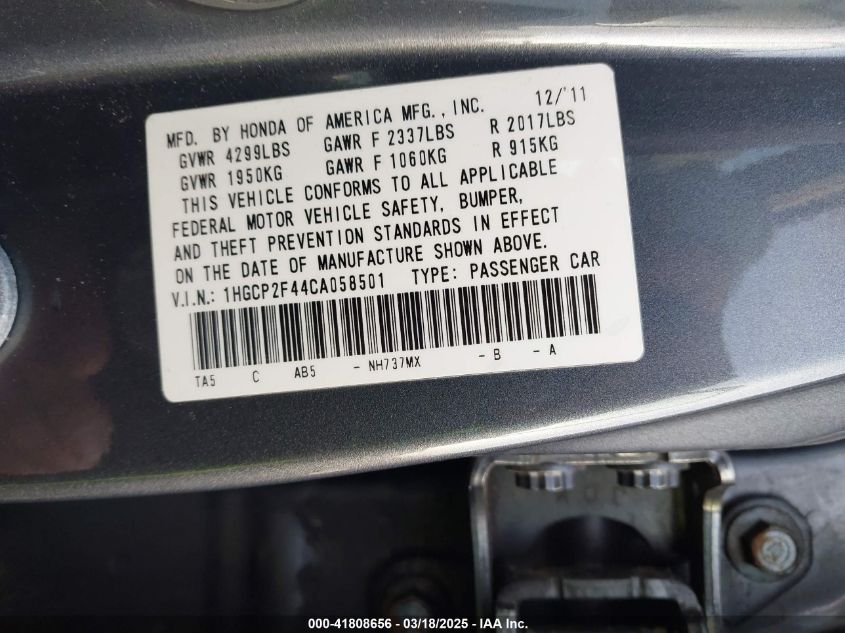Color GrayCylinders 4Drive Front wheel driveVIN 1HGCP2F44CA******State Run & Drive VerifiedDamage Right side AutoRIA
