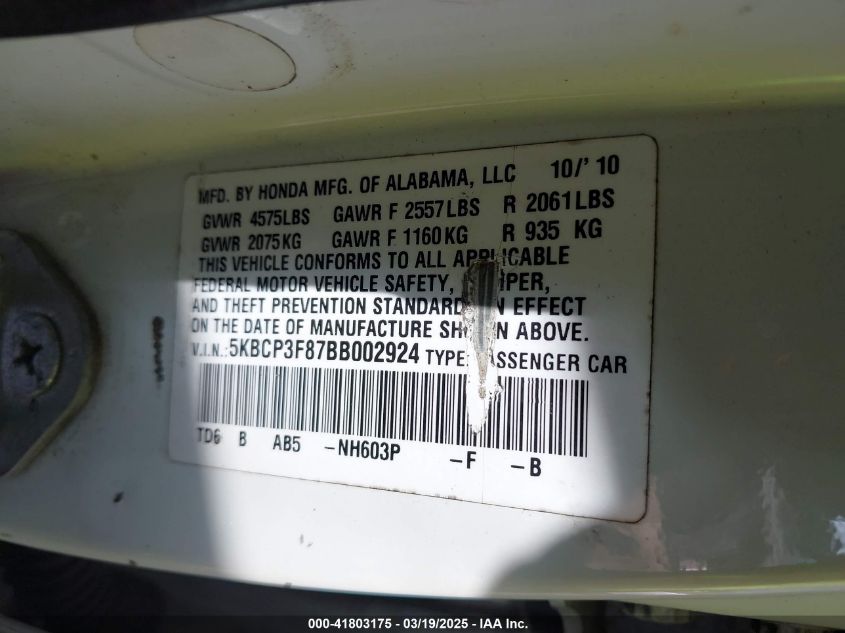 Color WhiteCylinders 6Drive Front wheel driveVIN 5KBCP3F87BB******State Run & Drive VerifiedDamage Front or back AutoRIA