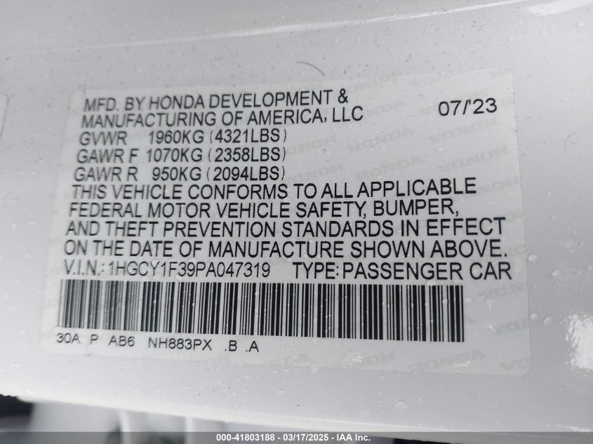 2023 HONDA ACCORD 2023 Gasoline, 1.5, Front wheel drive, VIN - 1HGCY1F39PA****** from the USA