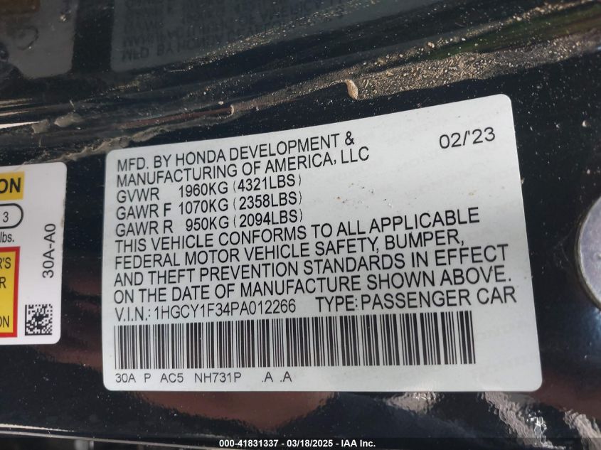 2023 HONDA ACCORD 2023 Gasoline, 1.5, Front wheel drive, VIN - 1HGCY1F34PA****** from the USA