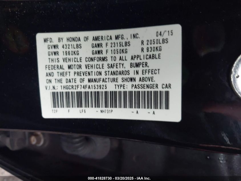 2015 HONDA ACCORD 2015 Gasoline, 2.4, Front wheel drive, VIN - 1HGCR2F74FA****** from the USA
