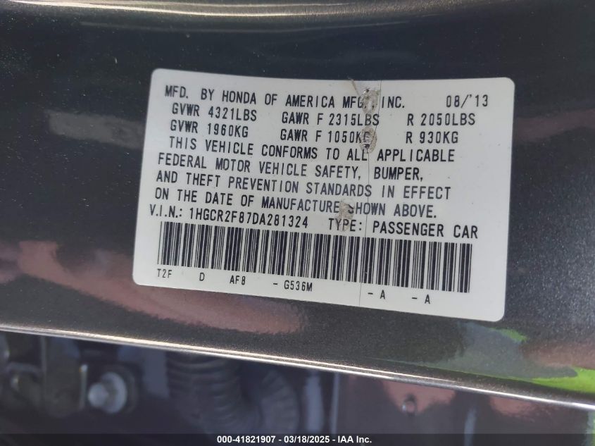 Color GrayCylinders 4Drive Front wheel driveVIN 1HGCR2F87DA******State Run & Drive VerifiedDamage Front or back AutoRIA