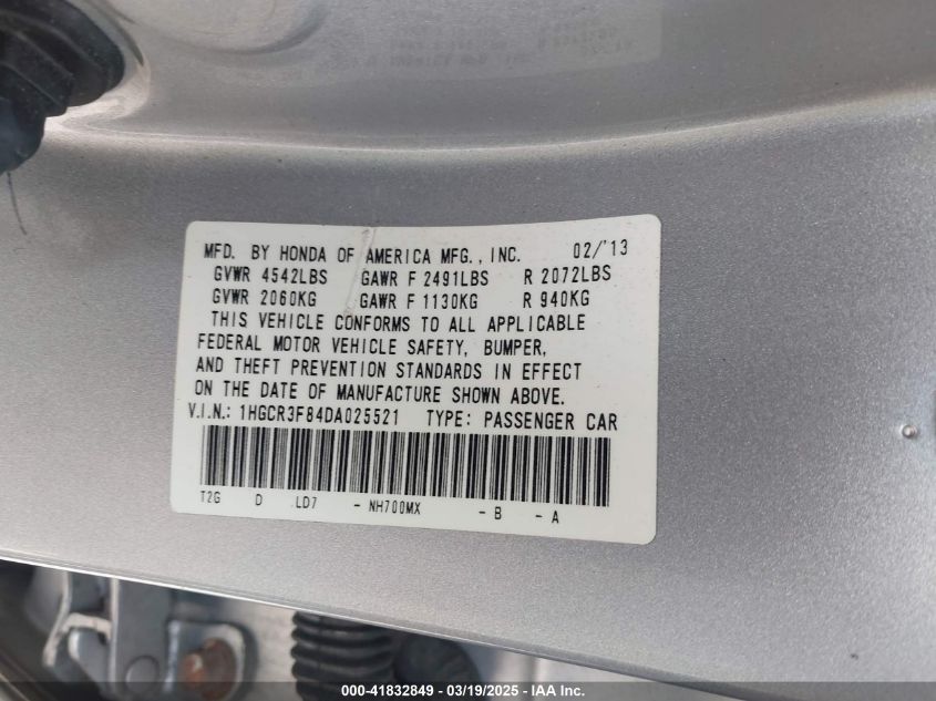 Color GrayCylinders 6Drive Front wheel driveVIN 1HGCR3F84DA******State Run & Drive VerifiedDamage Back AutoRIA