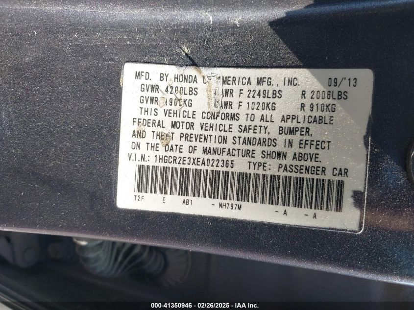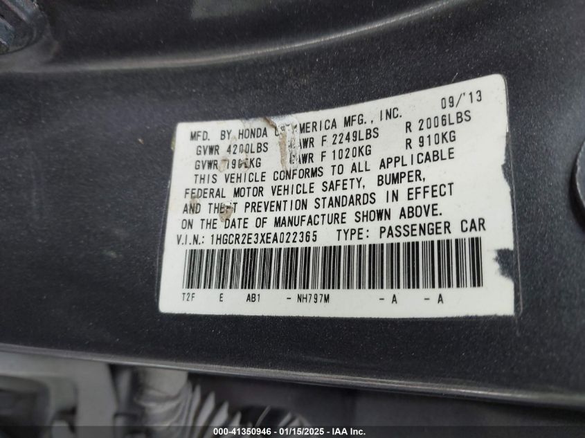 Color GrayCylinders 4Drive Front wheel driveVIN 1HGCR2E3XEA******State Run & Drive VerifiedDamage Front and backAuction date 2025-03-25 AutoRIA