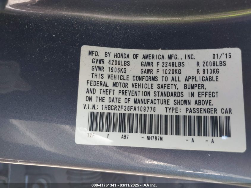 2015 HONDA ACCORD 2015 Gasoline, 2.4, Front wheel drive, VIN - 1HGCR2F36FA****** from the USA