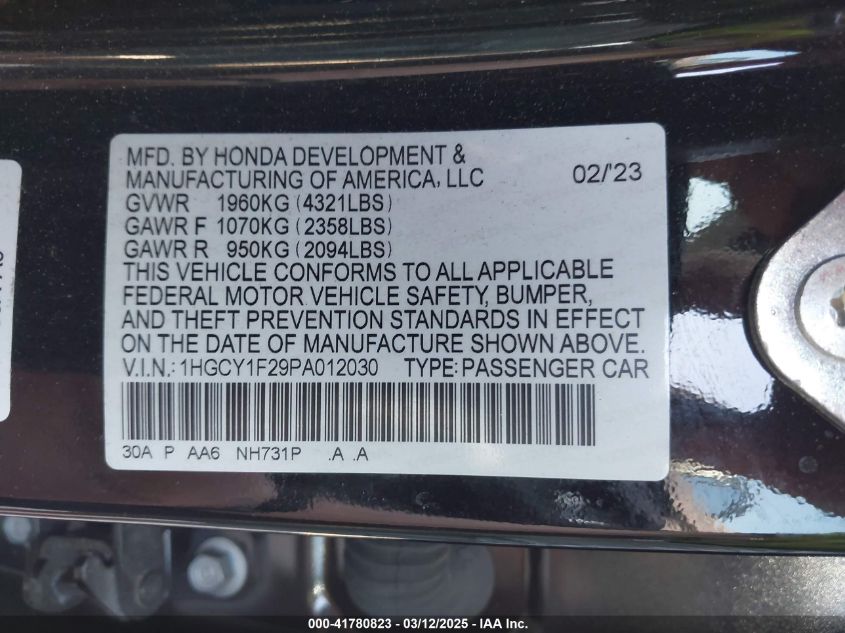 2023 HONDA ACCORD 2023 Gasoline, 1.5, Front wheel drive, VIN - 1HGCY1F29PA****** from the USA