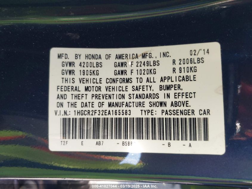 Color BlueCylinders 4Drive Front wheel driveVIN 1HGCR2F32EA******State Run & Drive VerifiedDamage Front right AutoRIA
