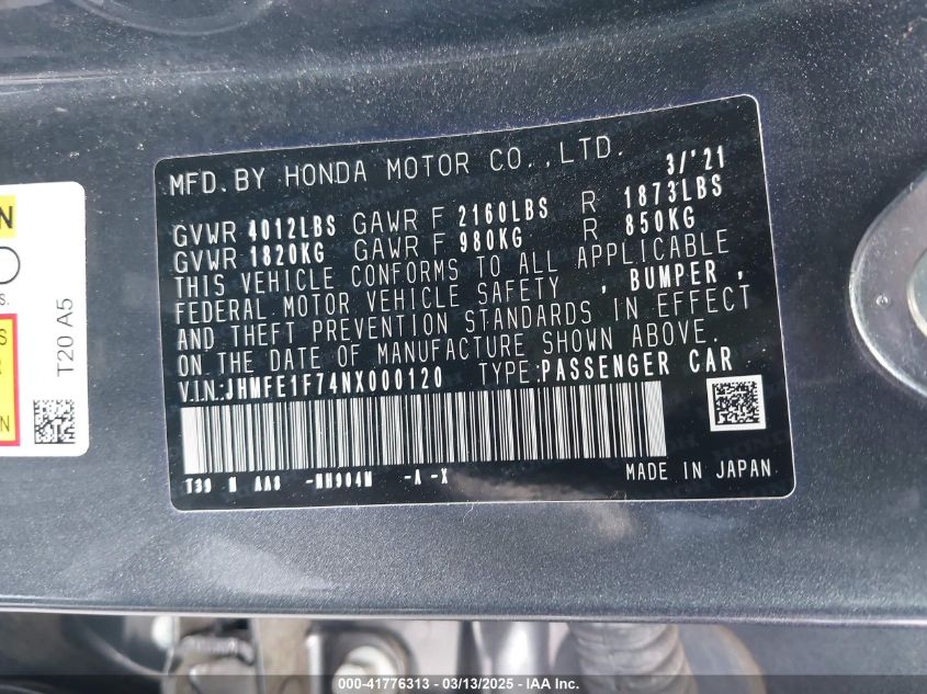 2022 HONDA CIVIC 2022 Gasoline, 1.5, Front wheel drive, VIN - JHMFE1F74NX****** from the USA